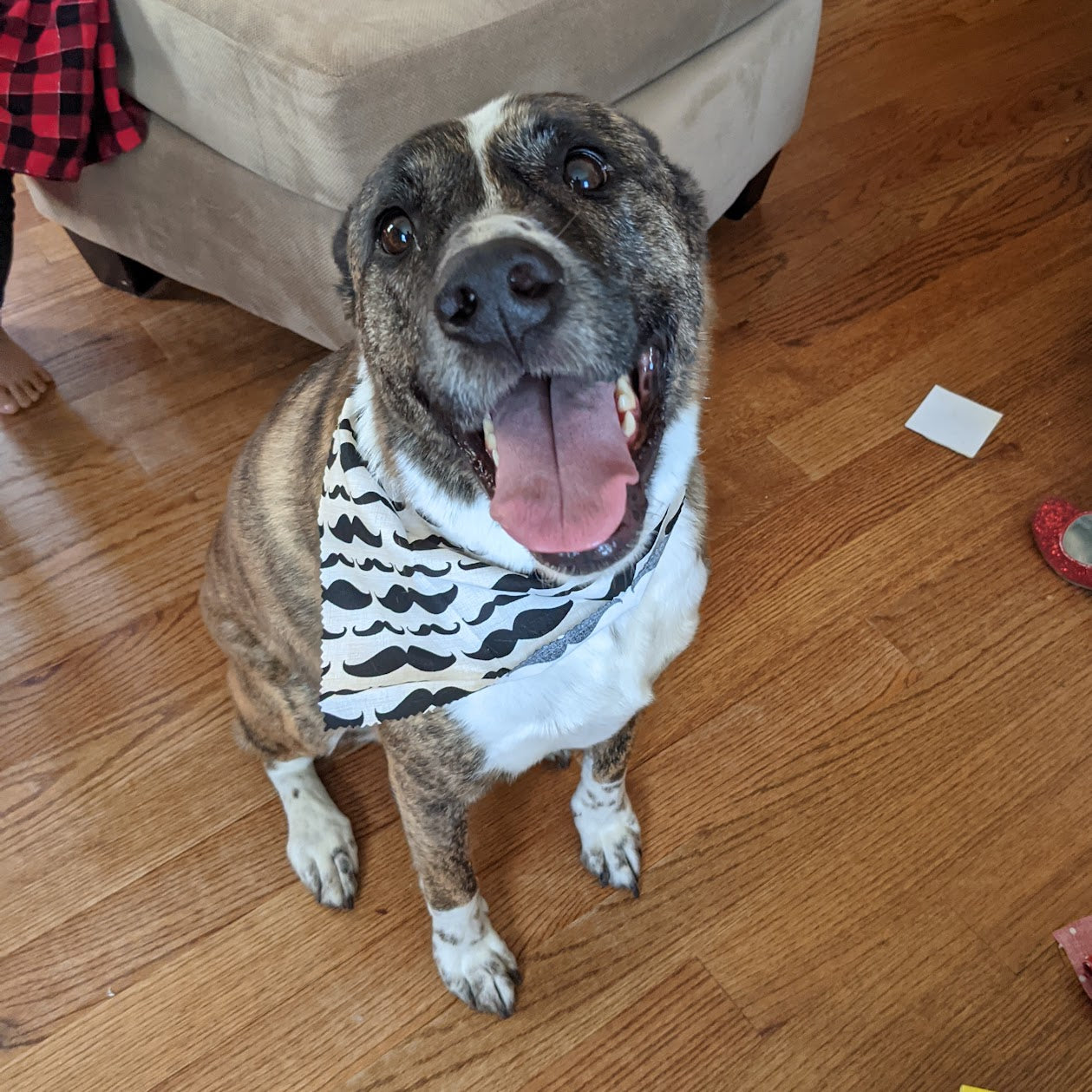 Woof! My name is Tango. I'm a pretty awesome and loyal dude, and I think I'm pretty great for emotional support. I will protect my family until the day I die, so don't cross me. I spend my time forcing my love upon everyone, especially my little sister Olive and people's crotches. I do get mad when Rain eats my food though.